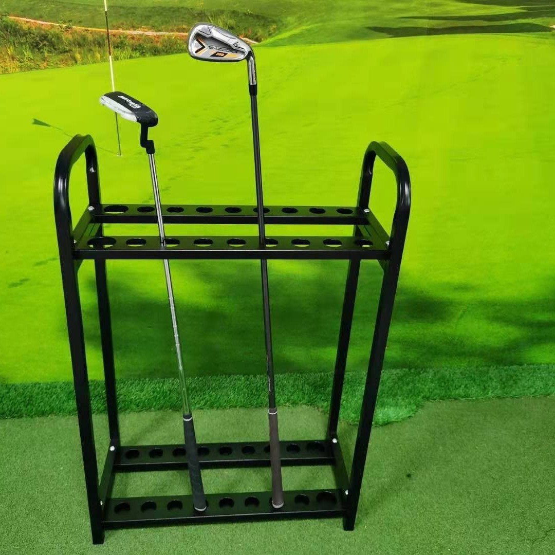 This heavy-duty 18-hole golf club stand features reinforced steel construction with a sleek baked paint finish. Designed for quick assembly and durability, it keeps clubs secure and neatly organized. Perfect for home or course use!